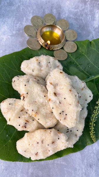 Flattened rice (aval) gently sweetened with jaggery, flavored with cardamom, and mixed with grated coconut.