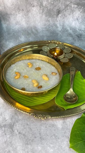 Traditional sweet porridge made with urad dal, jaggery, and coconut milk.