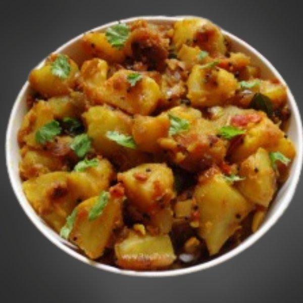 Flavorful South Indian potato curry cooked in a spicy, tangy tamarind base with coconut and aromatic spices.
