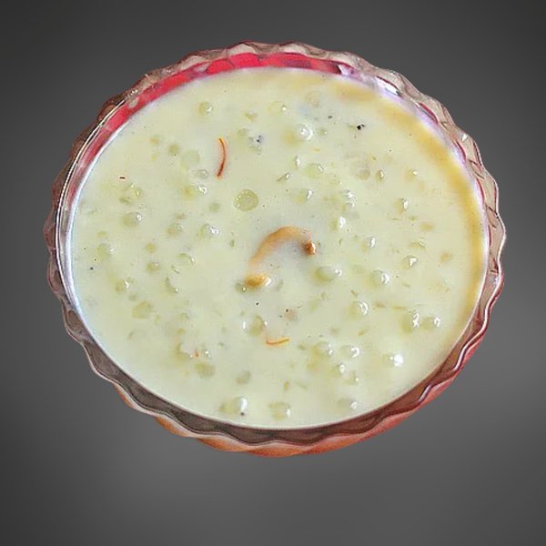 This creamy sweet pudding made with sago, milk, ghee and sugar is also known as Sago Payasam