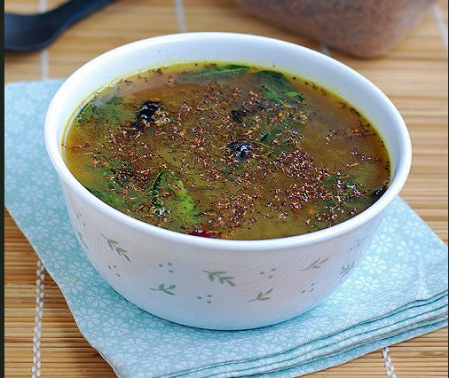 Summer seasonal raw mango and neem flowers goodness in soupy rasam