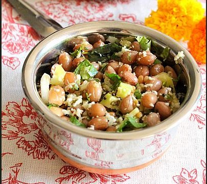 Channa Sundal recipe has white chickpeas, spices, herbs and a good dose of freshly grated coconut.