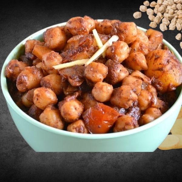 Popular meal side potato fry cooked with onion tomato based chilli masala