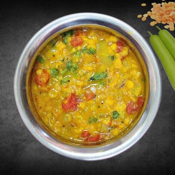 Toor dal sambar with simple seasonings cooked with Brinjal