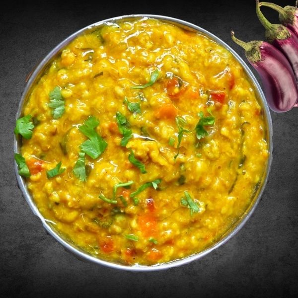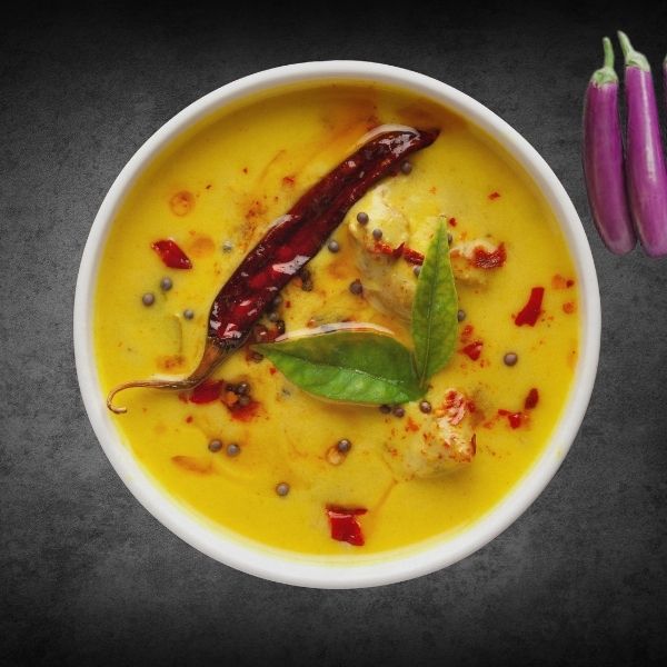 Brinjal cooked in Curd and chickpea flour with flavourful tempering