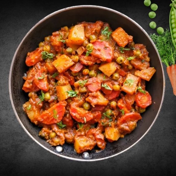 Peas and Carrots in thick coated curry made with onion tomato masala