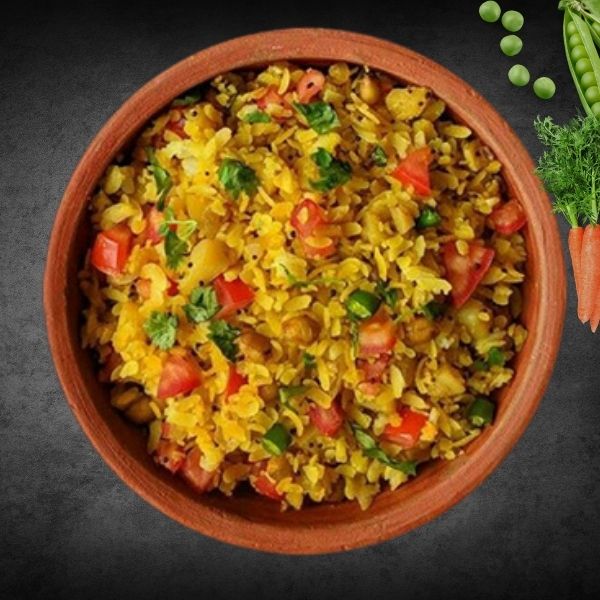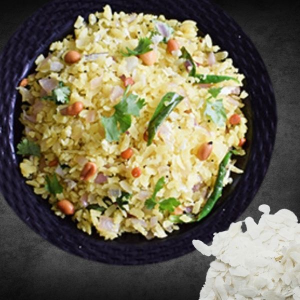 Simple, soulful poha with onions and masalas, topped with peanuts