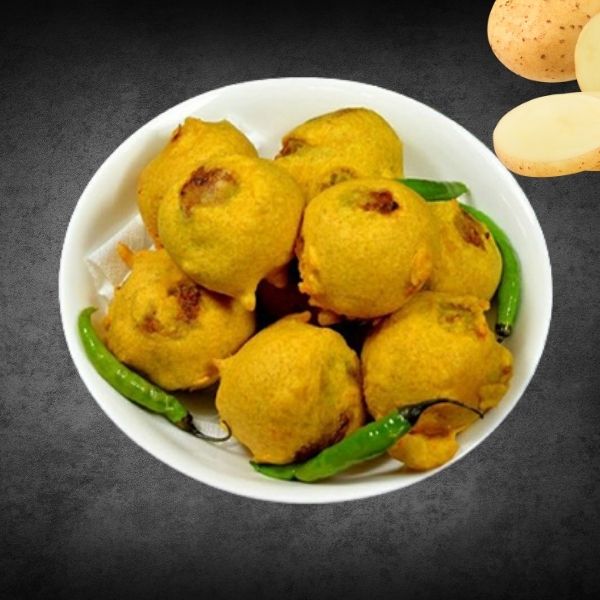 Potato with masalas dipped in gram flour and deep fried to ball shaped fritters
