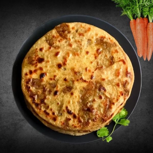 2 Parathas Perfectly cooked whole-wheat bread stuffed with Grated carrot blend with Indian spices.