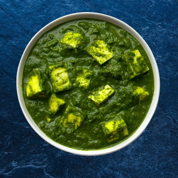 Healthy Spinach soft cooked in mild flavour spices with buttered cubes of Paneer