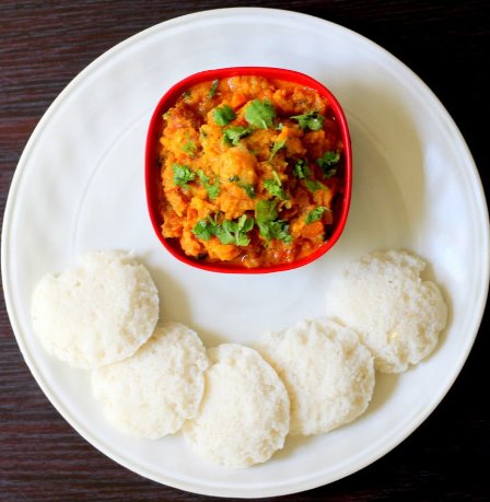 8 Nos Idli With 450 ml Masala Flavoured Steam Cooked Dal With Spices Made To Curry