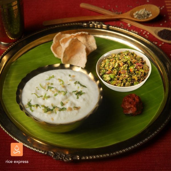 Time honored home food , Creamy Curd and rice , ginger and coriander flavor with Veg Fry