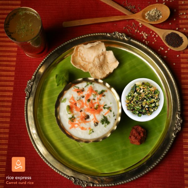 Homestyle goodness . grated carrot to the creamy Curd rice with temperings and veg dry