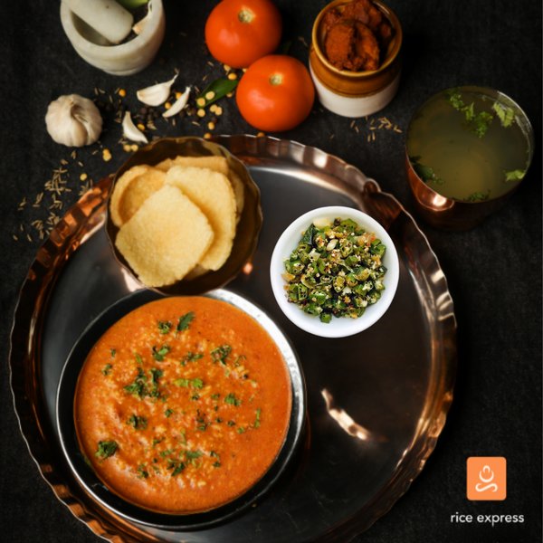 Tomato Rasam Rice 450 ml + Veg 250 ml + Fryums + Pickle