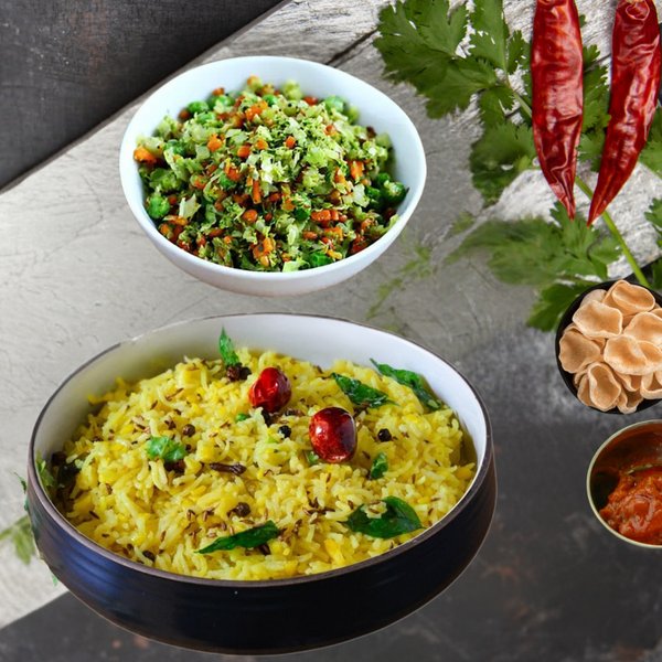Poha Curd Rice 450 ml + Veg 250 ml + Fryums + Pickle