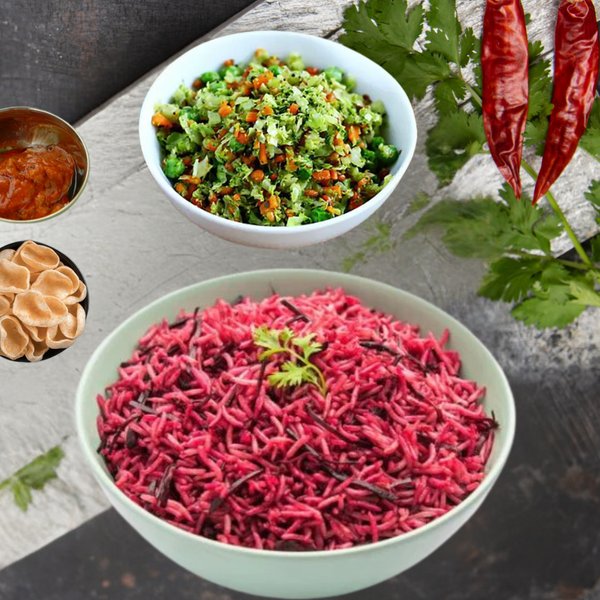 Beetroot Rice 450 ml + Veg 250 ml + Fryums + Pickle