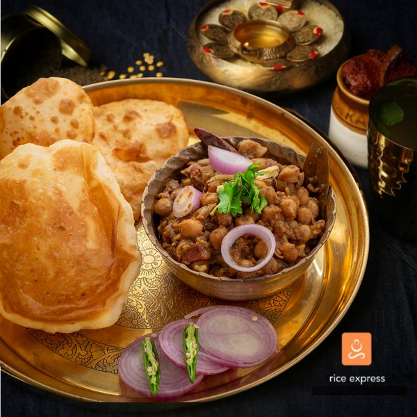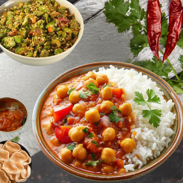 Chole 250 ml + Chawal 450 ml + Veg 250 ml + Fryums + Pickle