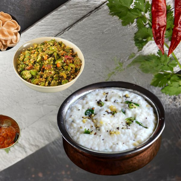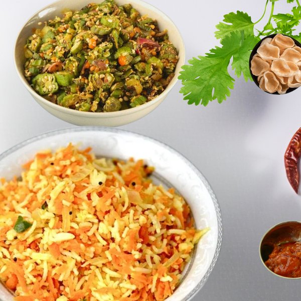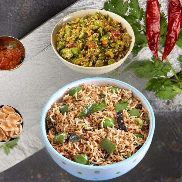 Lady's finger Rice 450 ml + Veg 250 ml + Fryums + Pickle