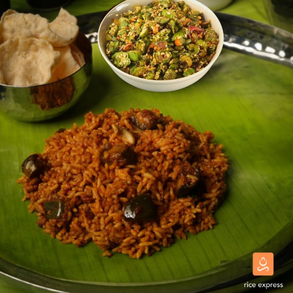 Brinjal Rice 450 ml + Veg 250 ml + Fryums + Pickle