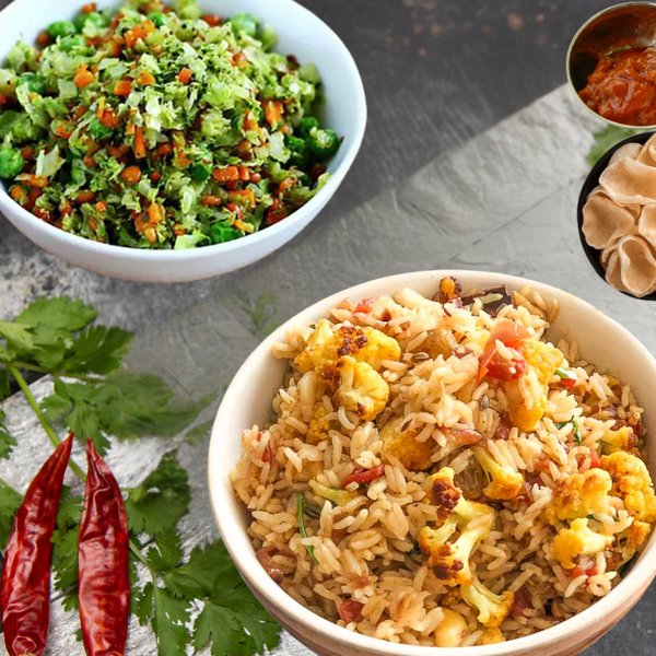 Cauliflower Rice 450 ml + Veg 250 ml + Fryums + Pickle