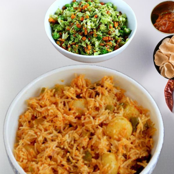 Potato Rice 450 ml + Veg 250 ml + Fryums + Pickle